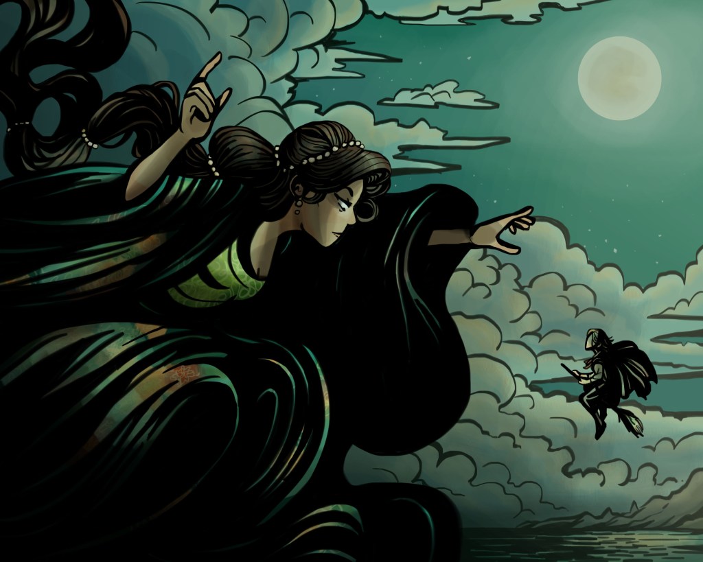 So, instead of illustrating a story I already knew, I decided to try to recapture that feeling and draw an image from a story I’ve never heard. Who are these witches hovering between the sea and the moon? Do they know each other already, or are they meeting for the first time? What could they possibly have to discuss? See if you can dream up some answers!
